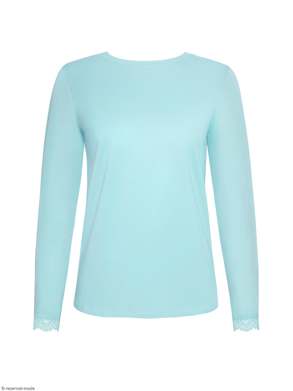 Ensemble de pyjama composé d'un top à manches longues et d'un pantalon droit. Le haut est confortable, avec une encolure ronde et des manches longues. Les manches sont ornées d'une fine dentelle élastiquée assortie à la couleur du haut. Le pantalon droit est imprimé d'un motif floral subtil qui ajoute une touche féminine et délicate. Sa taille est élastique et plus large pour un meilleur ajustement.