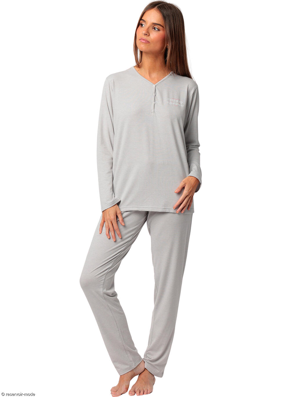 ADMAS FEMME - Ref.63627AD - Pyjama pantalon top long col V Elegant At Home Pyjama pantalon top manches longues col V Elegant At Home 72,00€TTC