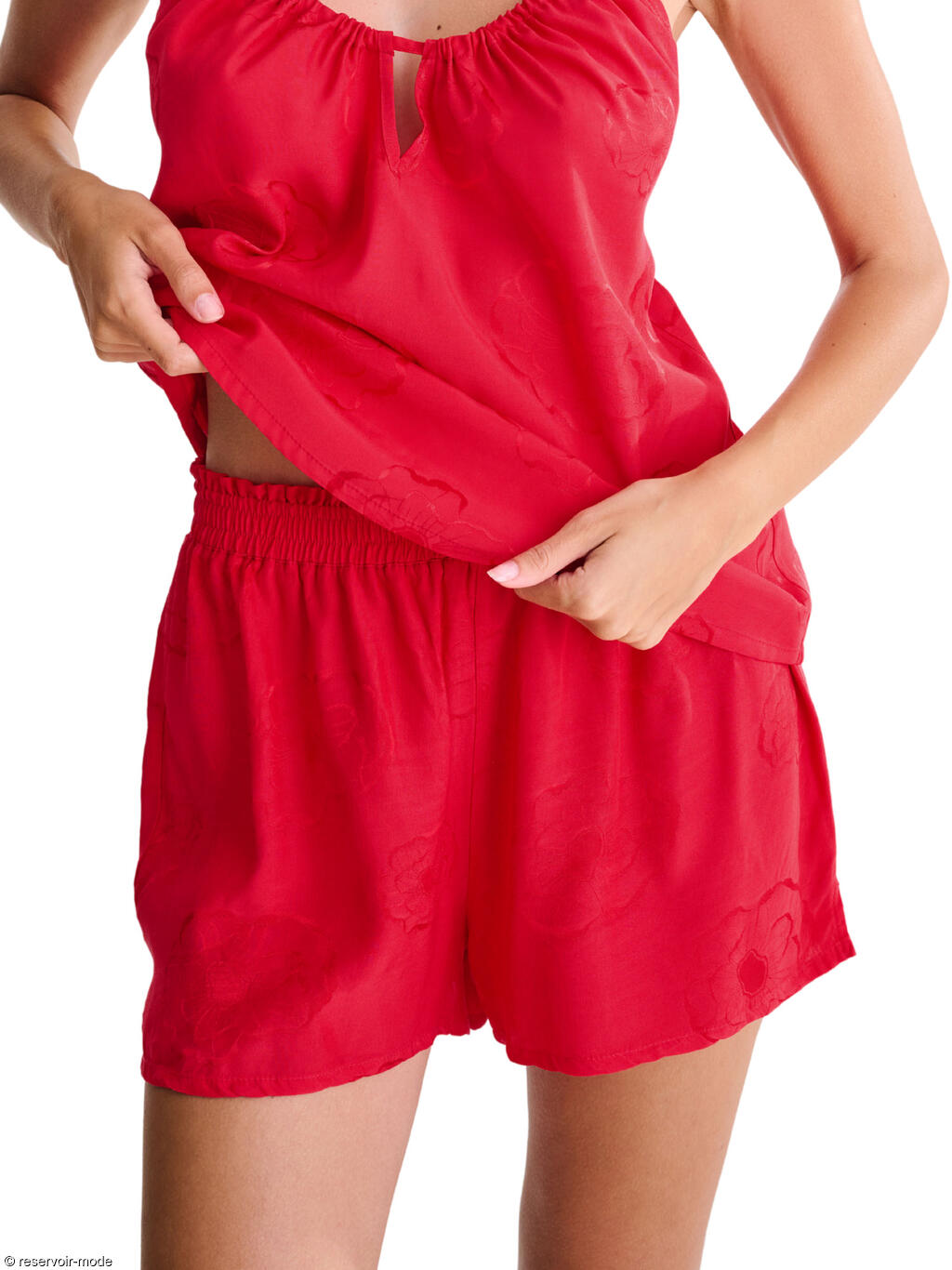 Ces pyjamas en viscose jacquard sont un choix idéal car ils allient confort, élégance et légèreté. La viscose est douce et brillante comme de la soie, et elle est respirante, ce qui signifie qu'elle vous gardera au chaud et au frais en été. Les vêtements sont très seyants, féminins et séduisants. Elle s'inspire de l'élégance naturelle de la fleur de pavot, stylisée dans des broderies et rehaussée d'un tricot fin et épuré. Ces fleurs apportent une touche de nature sauvage, de liberté et de sensualité, tout en restant très féminines et sophistiquées dans les broderies. Elles sont légèrement dispersées sur la surface et confèrent aux modèles un effet vraiment magique, presque féérique.