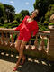 Short à large élastique et taille froncée confortable pour un look à la fois ludique et confortable. Fentes décoratives sur les côtés qui épousent délicatement les hanches.