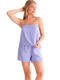 Cette collection allie élégance, confort et polyvalence. Confectionnée dans un tissu viscose léger et brillant, dans des tons lavande clair et champagne délicat, elle est conçue pour vous accompagner tout au long de la journée, d'une matinée ensoleillée à la plage à une journée détendue à la maison ou à des occasions professionnelles. Ces vêtements offrent une sensation de légèreté et de confort, idéale pour les chaudes journées d'été, tout en étant suffisamment élégants pour être portés comme des vêtements de nuit simples mais sophistiqués. Grâce à la composition naturelle du matériau, ces vêtements sont doux pour la peau, durables et adaptés à un usage répété tout au long de la journée. Cette collection est un excellent choix pour celles qui recherchent des vêtements pouvant être portés en diverses occasions. Cette série est labellisée #CityToBeach et #Dayjama, labels qui sont devenus les symboles de vêtements polyvalents qui vous accompagneront tout au long de la journée, des rues de la ville à la côte. Cette tendance durable met l'accent sur la flexibilité des vêtements qui conviennent aussi bien aux occasions professionnelles que décontractées.