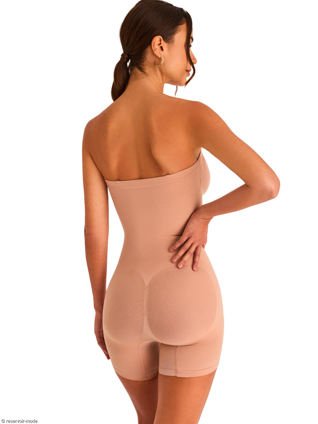 La conception bustier gainante de ce body permet de le porter sous des vêtements à épaules dénudées tout en offrant un maintien discret. Il présente un tricotage technique renforcé sur la zone abdominale pour aplatir le ventre et affiner la taille. La zone du buste est conçue avec une maille plus souple et des fronces centrales pour galber la poitrine naturellement sans l'écraser. La coupe panty s’arrête à mi-cuisse pour sculpter non seulement la taille et le ventre, mais aussi les cuisses, évitant ainsi les frottements. Les finitions au bas des cuisses sont plates pour éviter les marques disgracieuses sous des pantalons ou des robes moulantes. Le modèle existe en noir classique indispensable, et en nude idéal pour l'invisibilité totale sous les vêtements clairs. C'est le body idéal pour lisser et galber la silhouette avec discrétion et confort, quelle que soit votre tenue.
