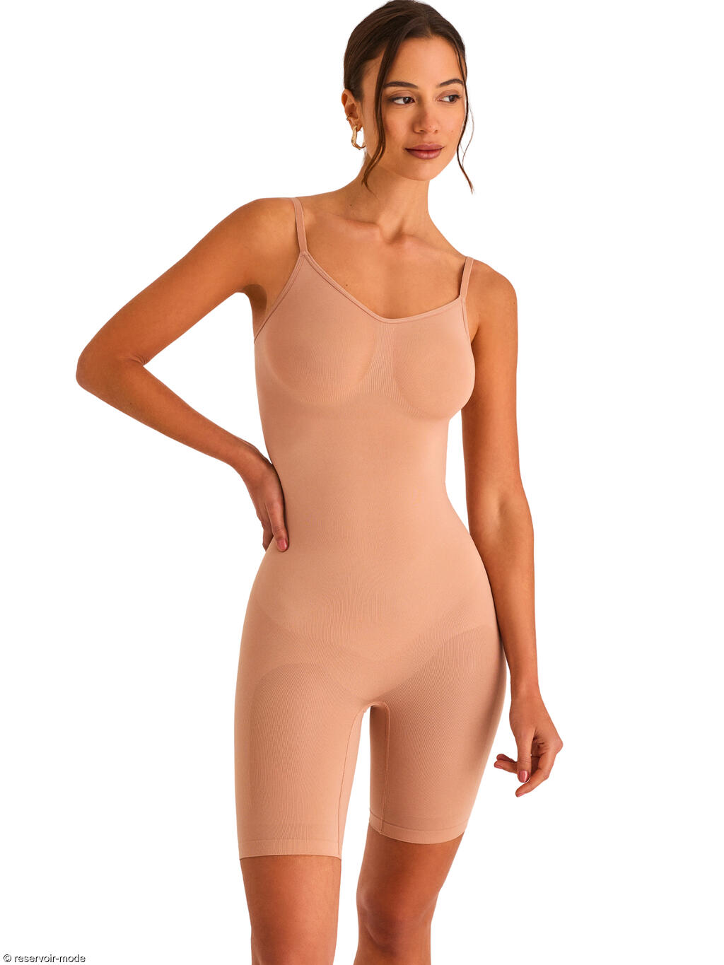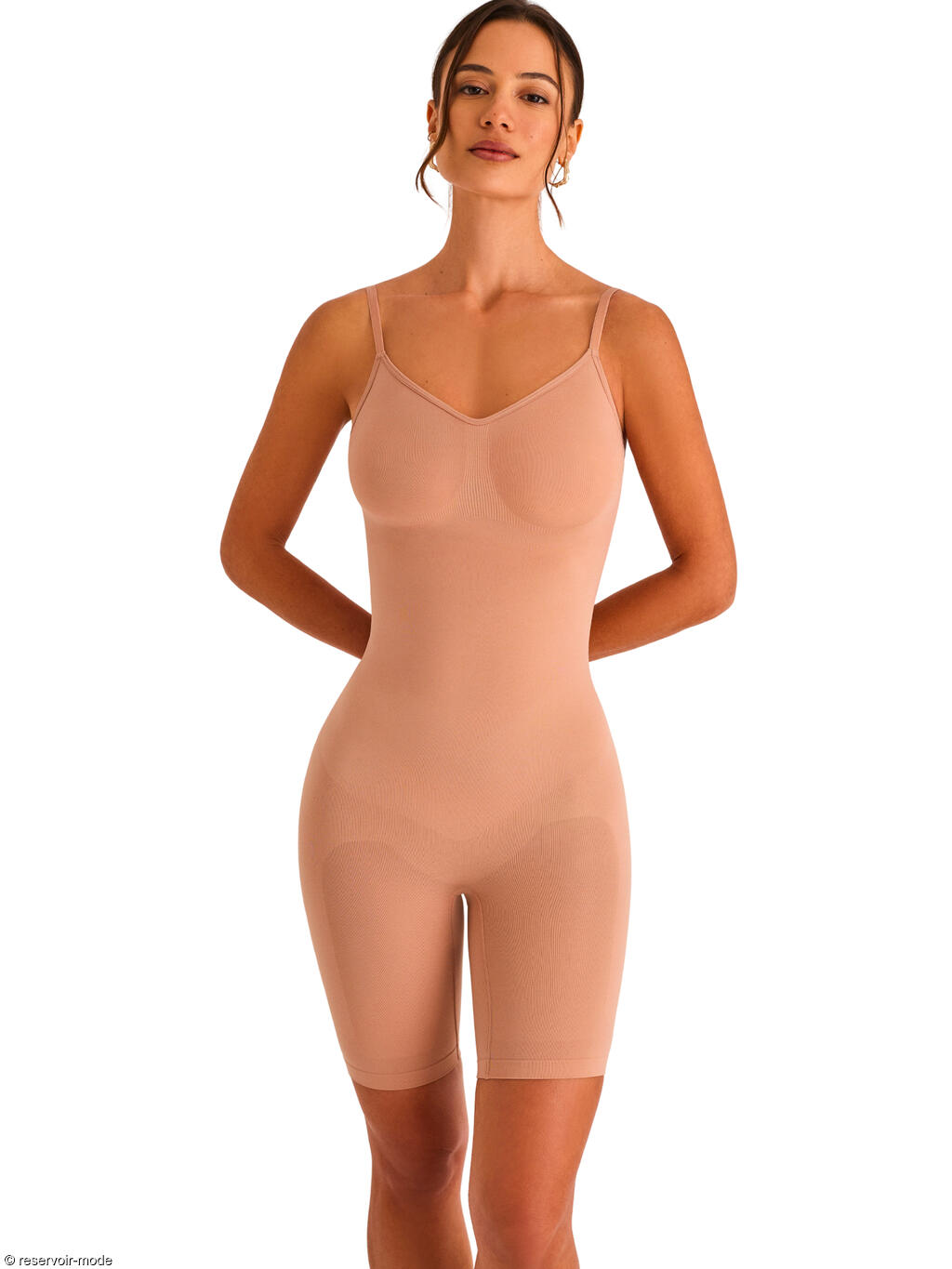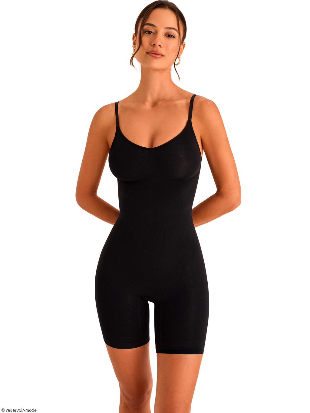 Ce body panty short sculptant est une pièce "tout-en-un" ultra-complète, conçue pour lisser et galber la silhouette de la poitrine jusqu'aux cuisses. C'est le compromis idéal entre le body classique et le panty gainant. Il associe un haut type caraco à un bas panty, offrant une unité parfaite sans aucune démarcation au niveau de la taille. Les bonnets sont souples avec une zone de tricotage aérée au centre, permettant de s'adapter à différentes tailles de bonnets tout en offrant un soutien léger. Les fines bretelles sont réglables, elles permettent d'ajuster le maintien de la poitrine et la hauteur du buste selon votre morphologie. La longueur mi-cuisse est idéale pour affiner le haut des jambes et éviter le frottement des cuisses sous les robes ou les jupes. Le tricotage est plus dense sur le devant pour un effet "ventre plat" immédiat, et sur les côtés pour marquer la taille. Le dos présente un design spécifique avec des zones de compression différenciées, qui permettent de remonter et de galber les fesses sans les aplatir. Les bas de jambes et le décolleté sont terminés de manière très fine pour ne pas comprimer la peau et rester invisible sous les vêtements. Le modèle existe en noir classique indispensable, et en nude idéal pour l'invisibilité totale sous les vêtements clairs. C'est la pièce parfaite pour obtenir une ligne fluide et continue, éliminant les marques de sous-vêtements habituelles au niveau de la taille et des hanches.