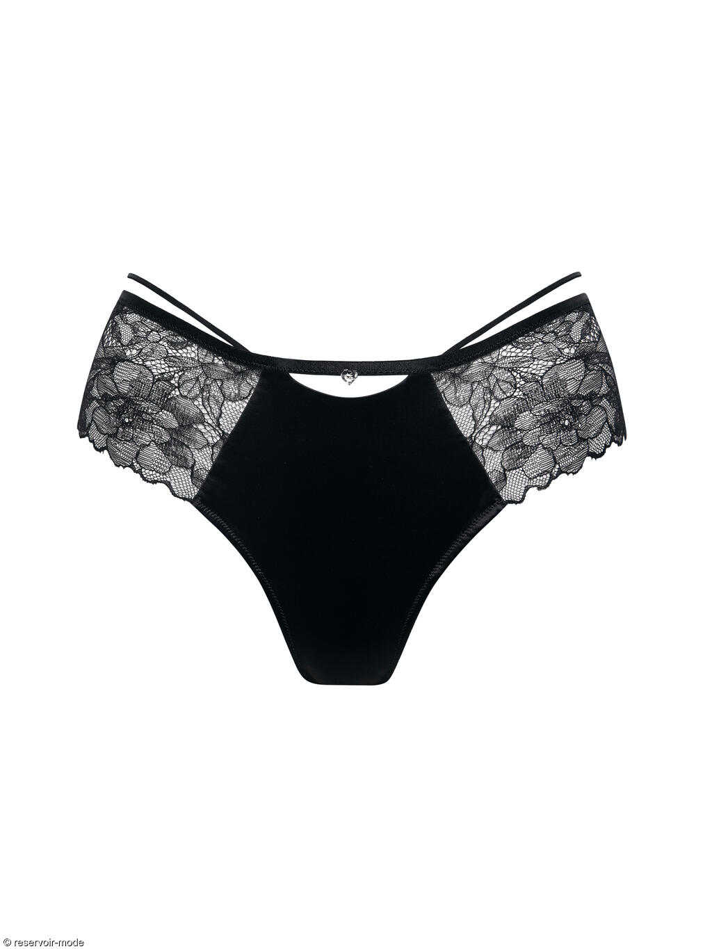 Modèle léger et très confortable avec une coupe haute sur les cuisses très tendance. Délicate partie latérale en dentelle, élégante ouverture en V à l'avant à la taille avec un cristal Swarovski. Élastique fin de 3 mm comme détail à la taille.