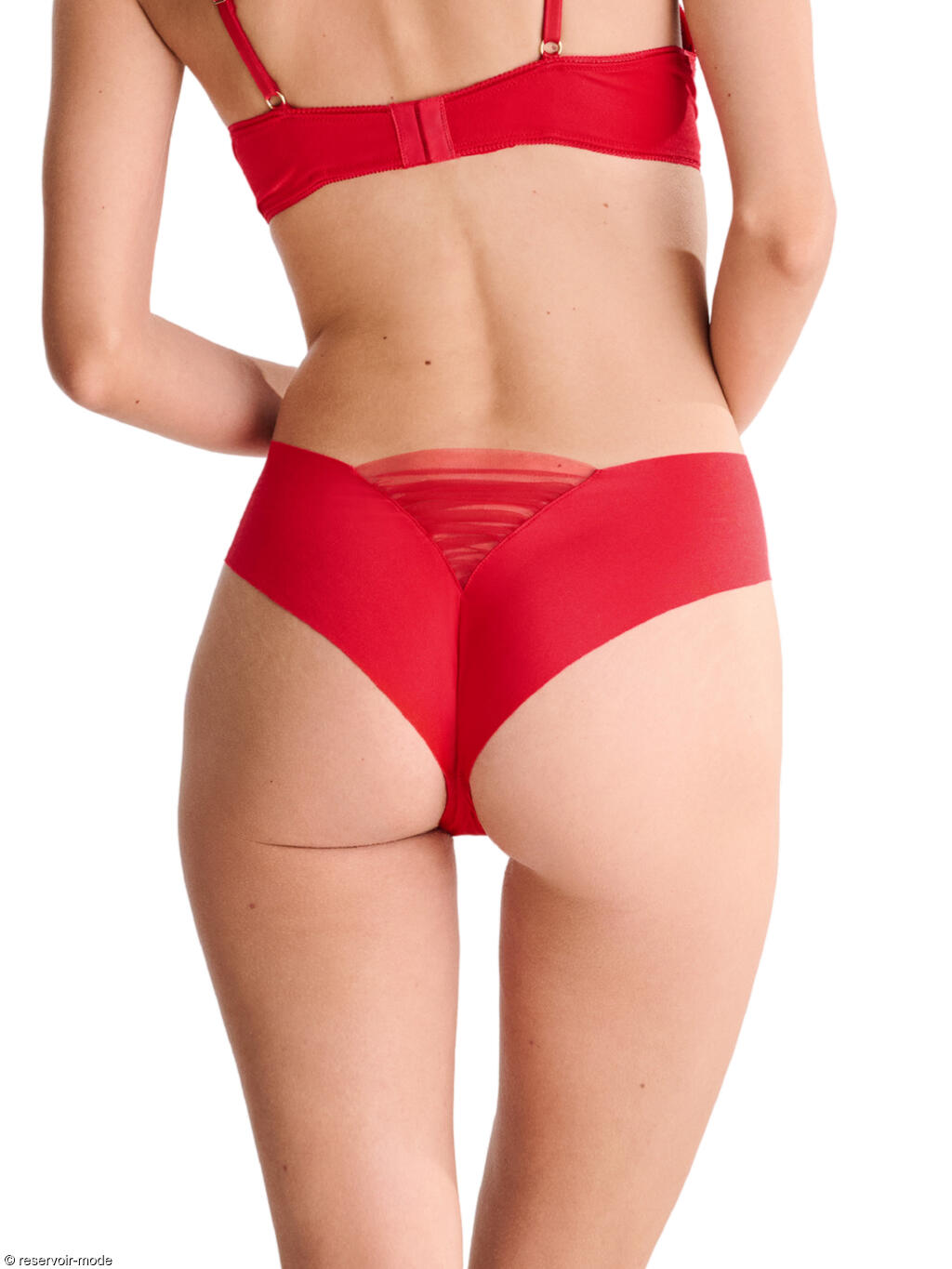 Design particulièrement confortable avec une taille haute et une coupe plus haute au niveau des jambes. Le devant décoratif est discrètement doublé. Large ceinture de coupe nette confortable, qui se prolonge par une coupe sans coutures au niveau des jambes à l'arrière. Détails froncés dnas le dos.
