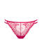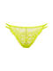 Coupe brésilienne séduisante et dentelle raffinée sur le devant. Lanières fines sur les côtés qui apportent une touche sexy supplémentaire. Tissu tricoté confortable à l'arrière, bordure à finition lisse. Gousset en coton pour un confort intime garanti.