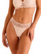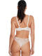 Brésilien avec une coupe à l'arrière qui met en valeur vos fessiers. Très confortable, idéal à porter au quotidien. L'avant est doublé, tandis que la ceinture et le dos sont entièrement en dentelle transparente pour ajouter un effet sensuel. La dentelle délicate apporte légèreté et féminité. Elle présente un motif floral finement dessiné, composé de petites fleurs stylisées reliées par des lignes souples, et épouse les formes avec subtilité. Le bord festonné le long des hanches et sur l'arrière renforce le charme féminin du brésilien. Cette finition ondulée ajoute une touche de finesse supplémentaire, tout en restant confortable au contact de la peau. Gousset en coton pour un confort intime garanti. Petit noeud décoratif sur l'avant avec un délicat bijou doré très fin. Petit logo doré à l'arrière.