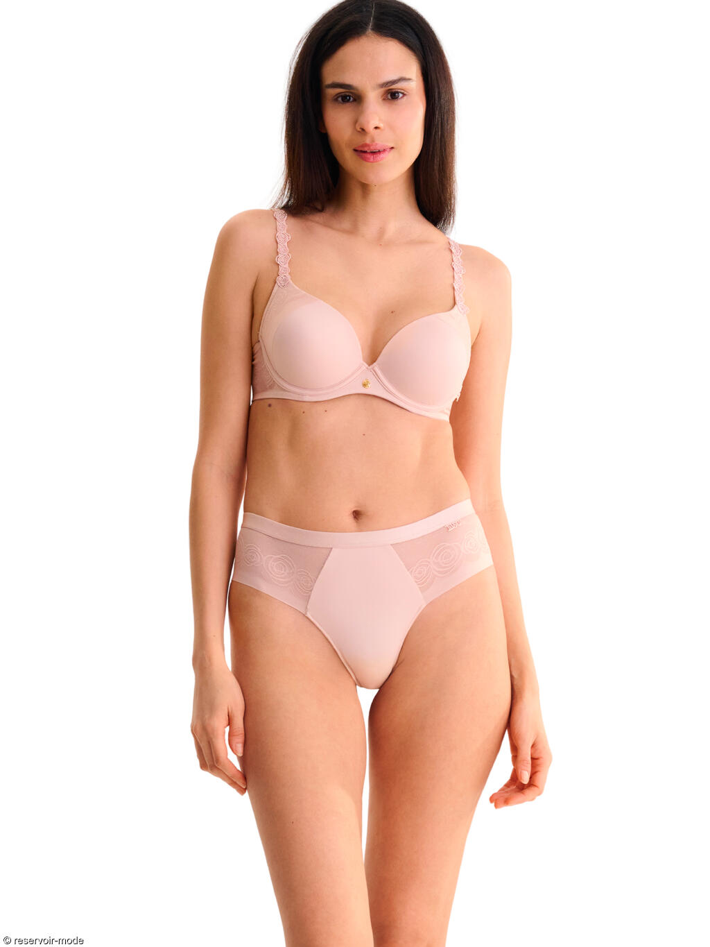 Brésilien dont la coupe accentue de manière séduisante vos atouts. Maille coton confortable et douce associée à des empiècements en dentelle transparente qui ornent les côtés et le dos, finement brodée de motifs floraux, ajoutant une touche de féminité et de sophistication. Bande élastique décorative plate cousue à la taille pour un confort accru. Une fine bordure place et douce est cousue dans les ouvertures des jambes pour un look sans coutures sous les vêtements. Lingerie séduisante pour un confort quotidien. Gousset en coton pour un confort intime garanti.