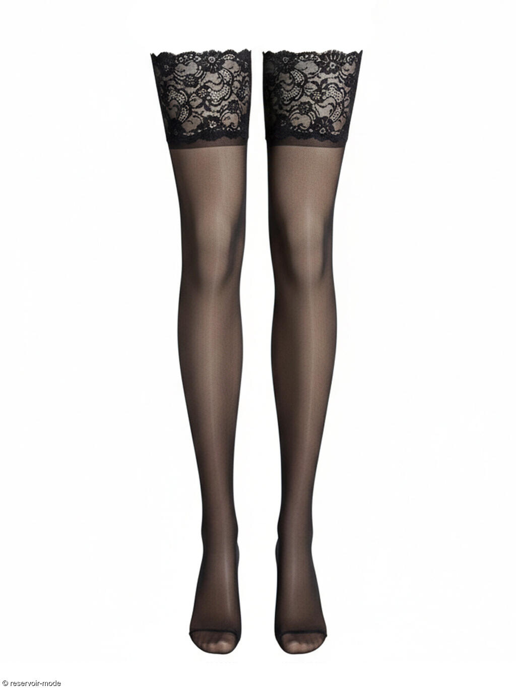 Extraordinaires bas autofixants voilés avec une précieuse bande en dentelle française. 15 deniers.