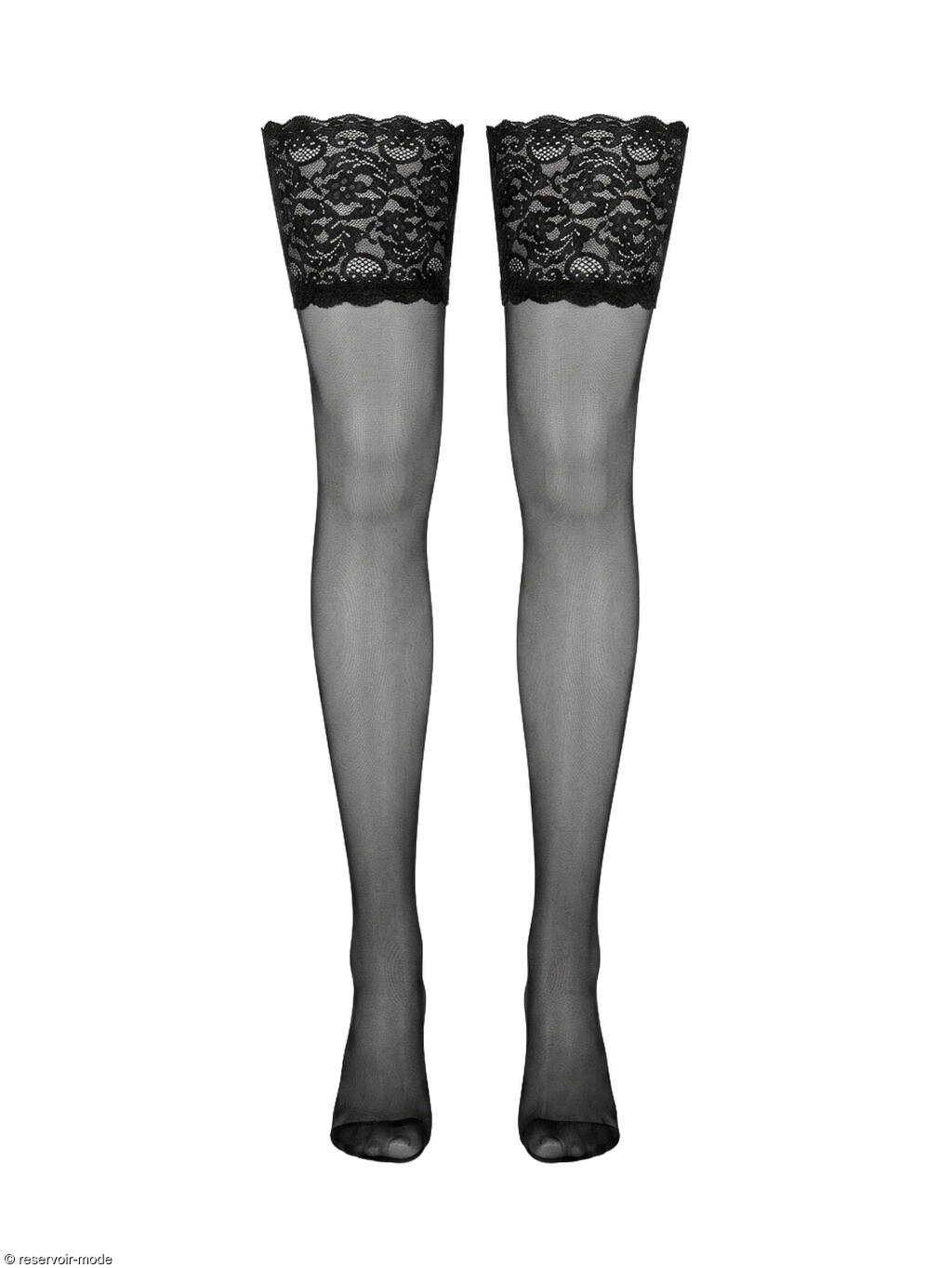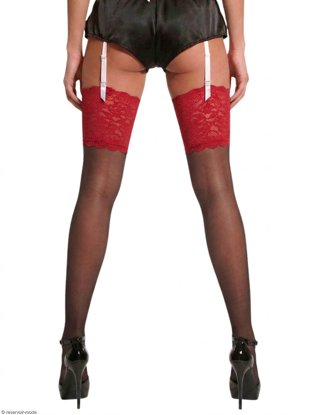 Paire de bas transparents 15 den dentelle française Night de la marque Girardi.  Bas transparents pour porte-jarretelles, ornés d'une large bordure en dentelle [voir la suite]