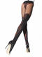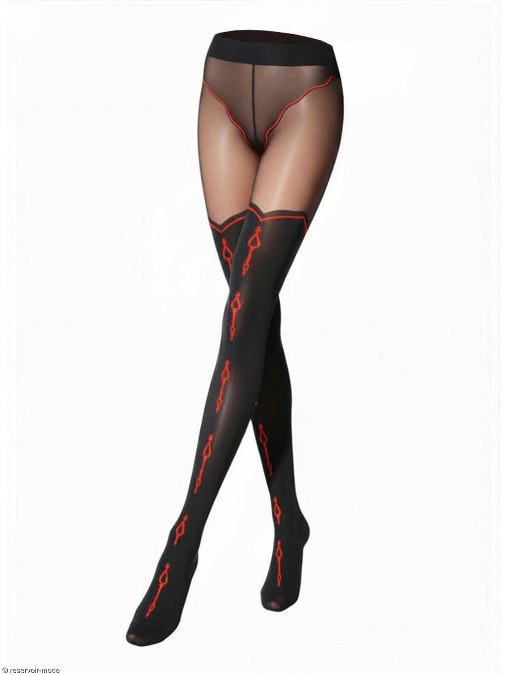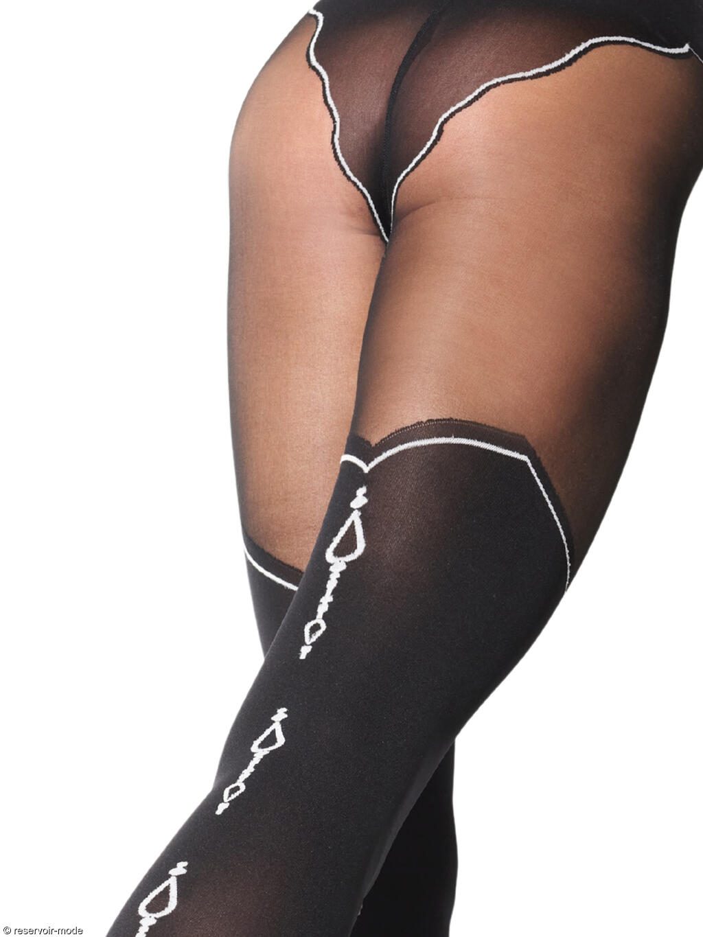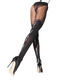 Collants opaques en microfibre mate. Effet cuissarde au dessus du genou, motif brodé à l'arrière de la jambe. 50 deniers.