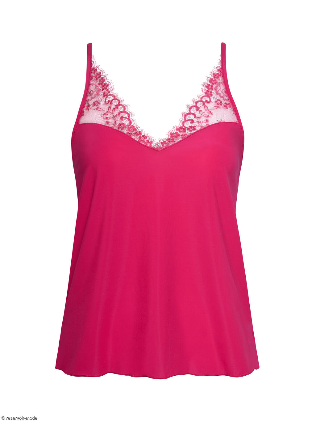 Caraco débardeur avec bretelles fines réglables, dans une coupe tendance avec fentes sur les côtés. Décolleté rehaussé de dentelle romantique, dos séduisant avec détail en cuir. Tricot élastique confortable.