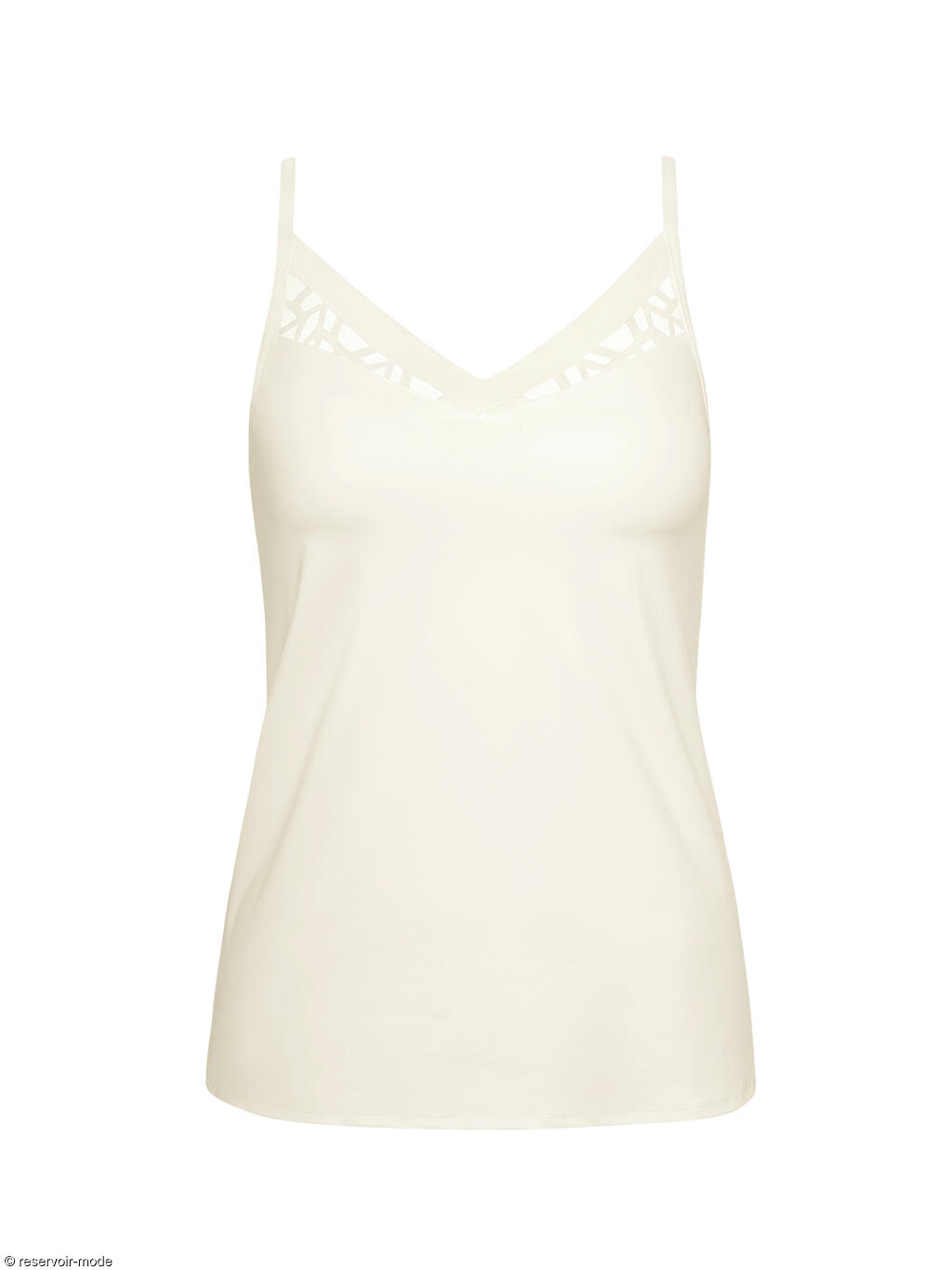 Top caraco en tricot élastique doux combiné avec des passepoils élastiques lisses. Détail de dentelle attrayant au milieu du devant. Il pourra être porté comme sous-vêtement ou comme vêtement d'extérieur tel un top attrayant. Les fines bretelles sont réglables pour un ajustement parfait.