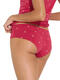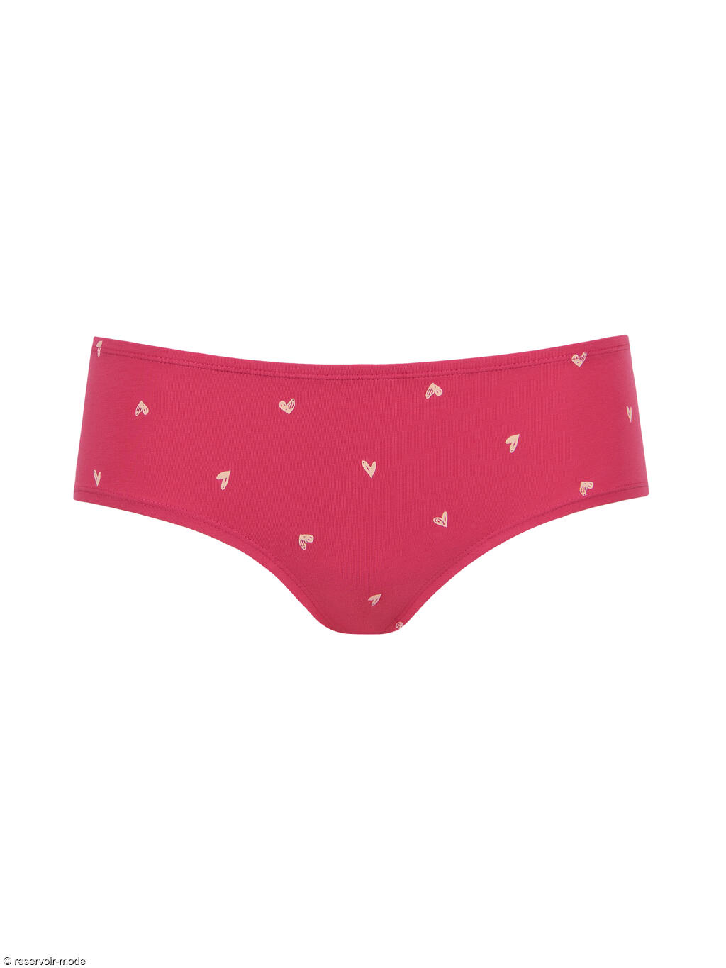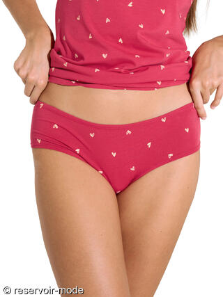 Shorty de coupe simple, sans élastique à l'ouverture des jambes. Il est entièrement imprimé avec des motifs en forme de coeurs. Gousset en coton pour un confort intime garanti.