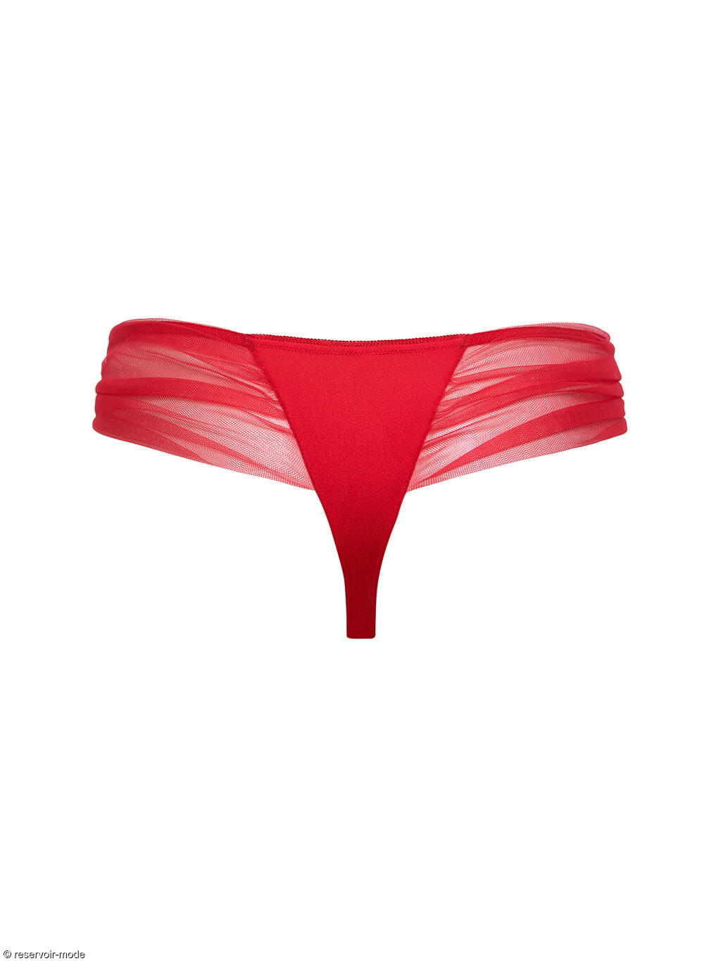 String collection MIRACLE de la marque Lisca.  Coupe minimaliste avec un devant brodé, partiellement rembourré. Le devant en tulle se prolonge en un drapé [voir la suite]