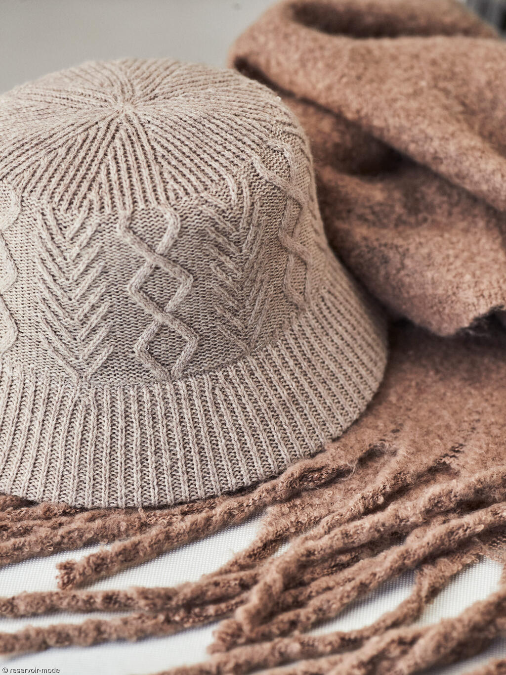 Bonnet en tricot dans une version chaude et texturée avec une calotte arrondie et un bord légèrement tombant autour. Tricot en mélange de laine dans une texture douce et moelleuse qui donne une allure souple et confortable. Motif torsadé pour un aspect hivernal et cosy. Excellente alternative au bonnet classique pour styliser vos tenues, il sera votre allié des journées automnales et hivernales.