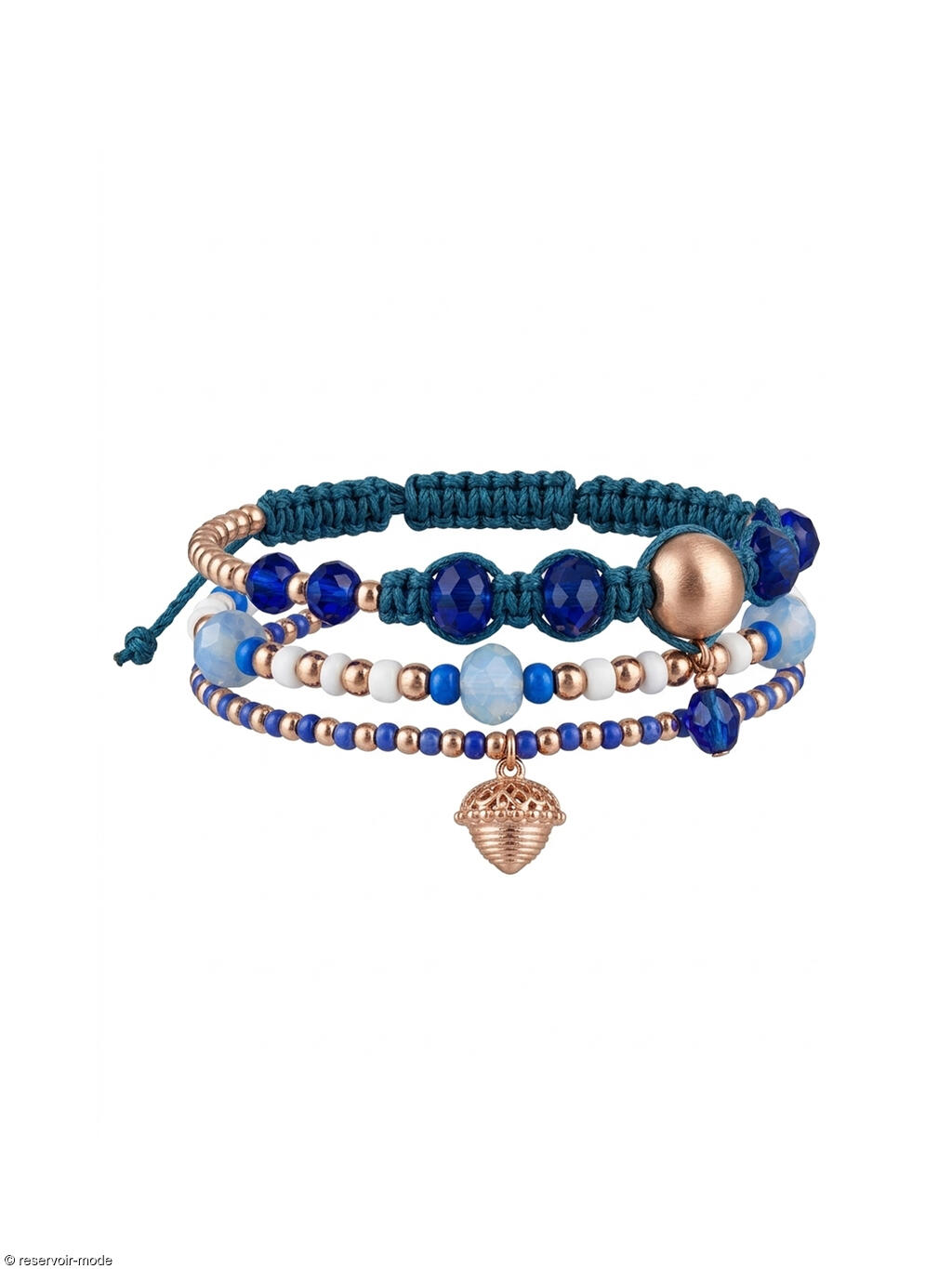 Ensemble de trois bracelets bleu et doré