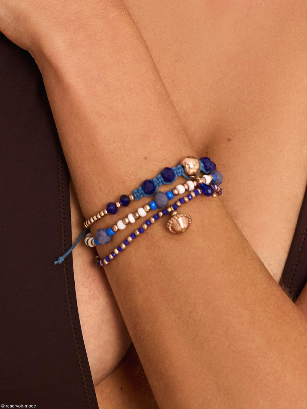 Ensemble de trois bracelets bleu et doré Complementos de la marque Selmark Mare.