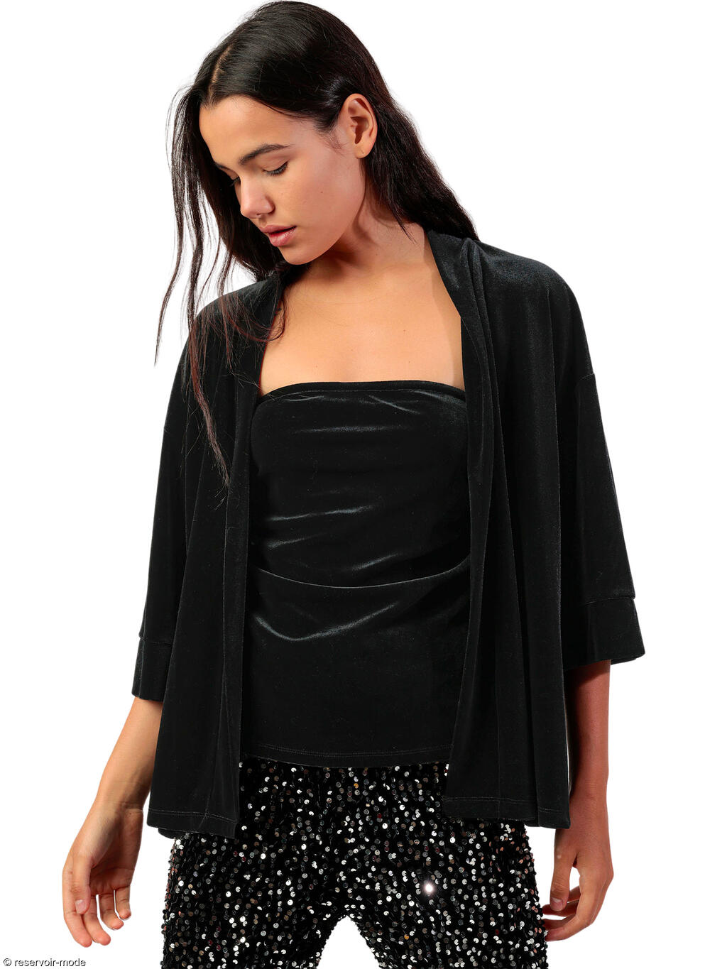 Veste kimono velours manches trois-quarts Velour