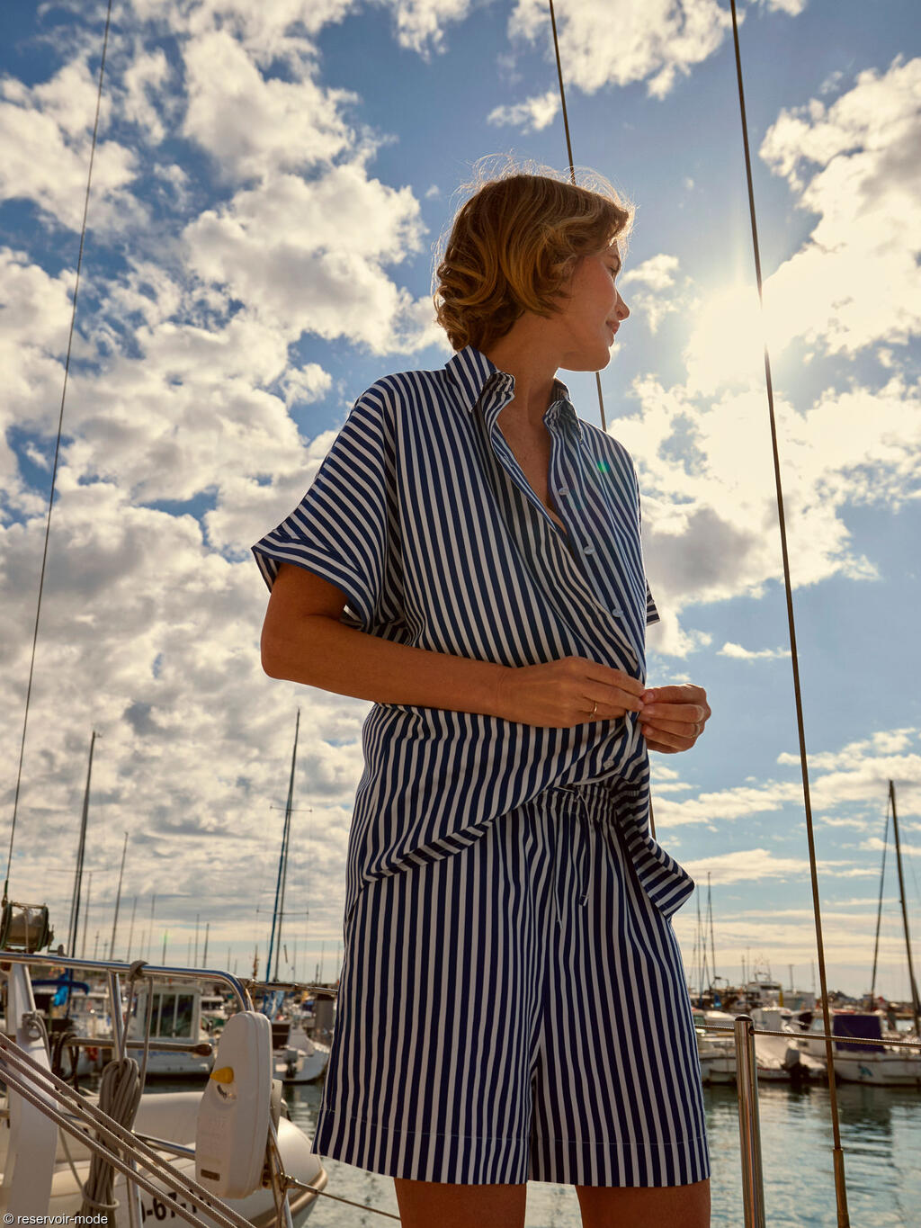 Collection de style nautique, qui est le choix idéal pour celles qui aiment un style intemporel, fonctionnel, mais aussi élégant et contemporain. Cette série est fabriquée dans une matière qui lui confère une sophistication féminine grâce à sa texture fine et rayée. Les détails ajoutent une touche de sophistication et un look exclusif à la collection. Tous les modèles de la série sont conçus pour être confortables et adaptés aux grandes tailles.
