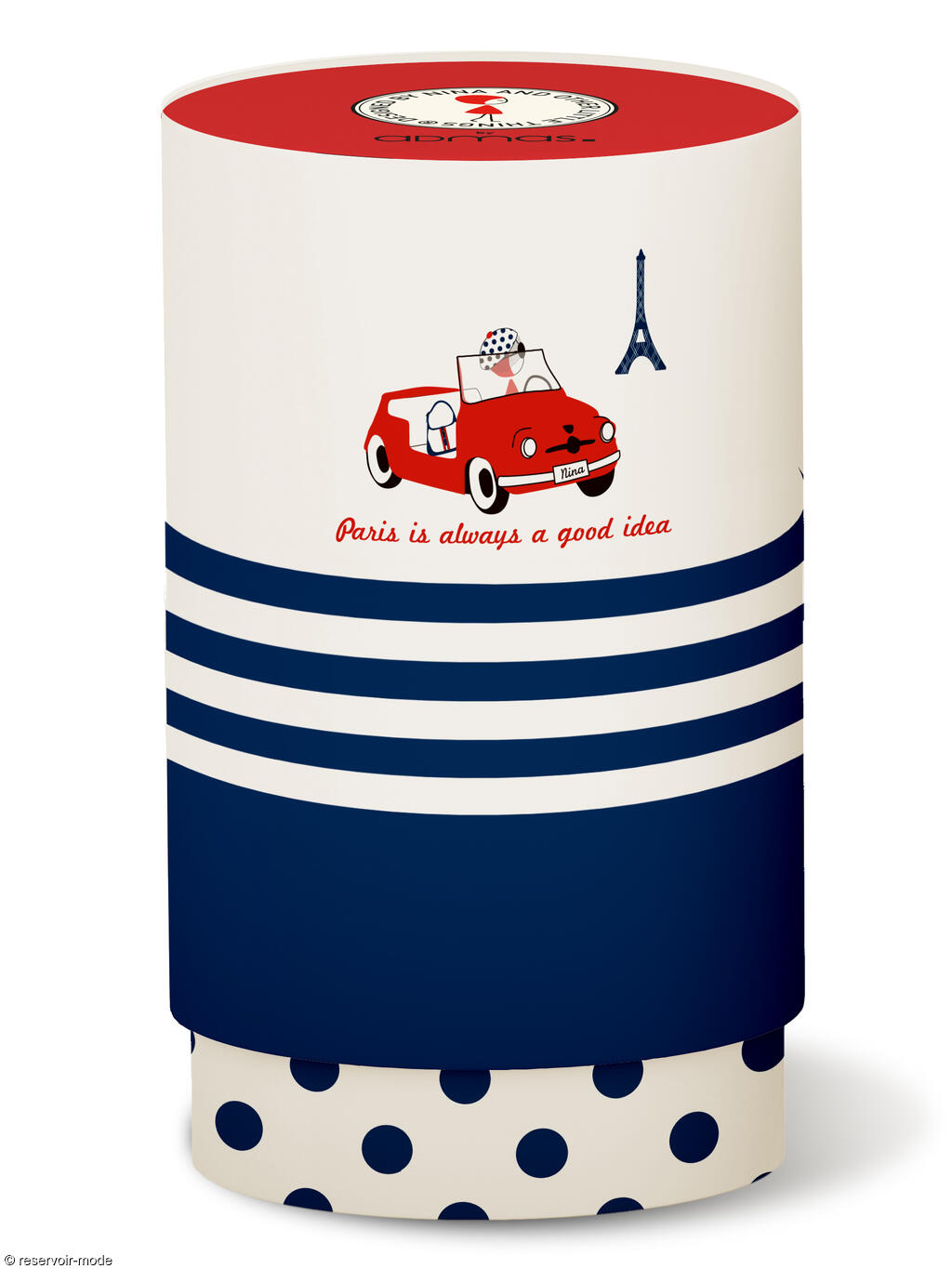 Ce pyjama est livré dans une boîte cylindrique coordonnée.