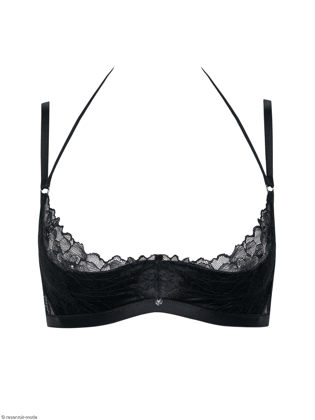 Modèle de soutien-gorge avec soutien en mousse dissimulé. Large élastique comme détail sur toute la longueur du dessous de poitrine. Détail en dentelle sur les bonnets et dans le dos. Bretelles de 3 mm, avec fermeture derrière la nuque. Bretelles et bretelles à boucle réglables, pour un ajustement parfait. Un cristal Swarovski orne le centre au milieu des bonnets.